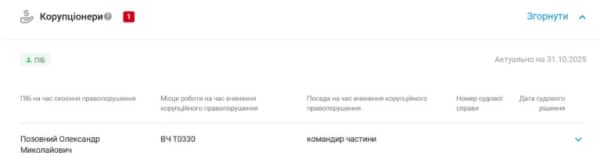 “До робіт залучали сумнівні компанії із завищеними цінами, а численні судові справи та кримінальні провадження командування ігнорувало. Іронія в тому, що один з керівників частини сам внесений до реєстру корупціонерів НАЗК. Йдеться про Олександра Позовного”, — зазначається в розслідуванні “Главкому”. Там додають, що звернулися з відповідними запитами до правоохоронних органів.