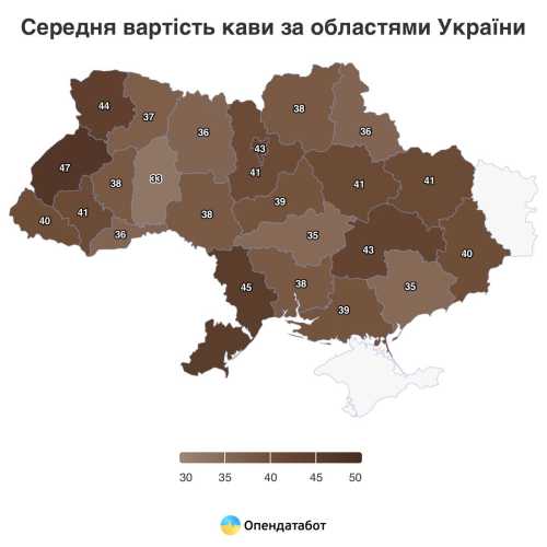 Найбільше річне збільшення вартості еспресо зафіксовано у прифронтовій Сумській області: +26%. Незважаючи на це, середня ціна все ще нижча за загальноукраїнську — 36 гривень.