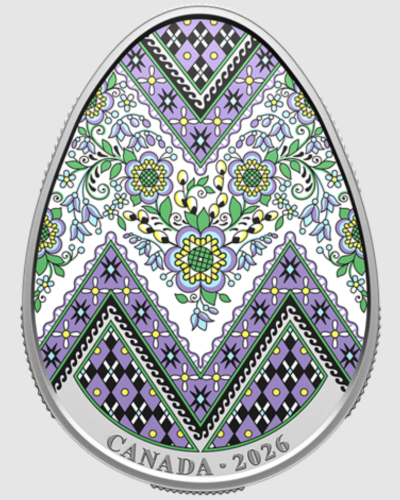 Королівський канадський монетний двір презентував вишукану колекційну монету з чистого срібла, виконану у формі традиційної української писанки. Цей унікальний нумізматичний витвір доступний для придбання за ціною 299.95 канадських доларів (приблизно 8 700 ₴ за поточним курсом). Інформацію про випуск підтверджено офіційним ресурсом монетного двору.