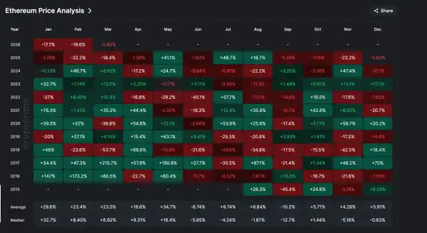 Криптовалюта Ethereum зустрічає березень після вкрай несприятливого лютого. Починаючи з вересня 2025 року, актив послідовно закривав місяць зі збитками протягом шести періодів поспіль. Така серія є безпрецедентною в історії проєкту. Якщо поточний місяць також завершиться спадом, це стане найтривалішим періодом зниження вартості токена.