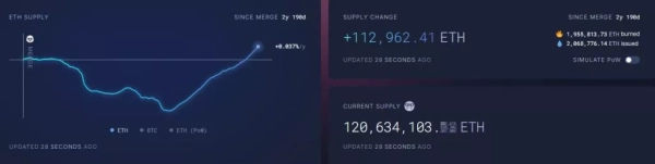 Швидкість використання Ethereum зменшилася, і приблизно на початку квітня кількість ефіру в обігу почала зростати. До початку 2025 року кількість доступного ETH повернулася до рівнів, які спостерігалися до хардфорку The Merge у вересні 2022 року.
