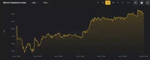 Аналітики Hashrate Index зазначили, що після зниження складності хешрейт зріс вище 50 доларів за кожен PH на день, що підвищує прибутковість майнінгу в умовах поточної волатильності ринку.