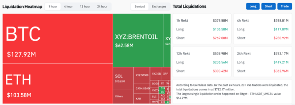 ### Позитивна динаміка на ринку альткоїнів Традиційно, зростання біткойна супроводжується позитивними зрушеннями і серед інших криптовалют: * **Ethereum (ETH)** відзначився зростанням на 6%, досягнувши позначки у 2200 доларів США (близько 88 000 гривень). * **BNB, XRP та Solana (SOL)** також показали приріст у межах 3-4%. ### Ліквідації на криптобіржі За останню годину обсяг ліквідацій на ринку криптовалют сягнув 374 мільйонів доларів США (близько 14 960 000 гривень), а за добу ця сума перевищила 782 мільйони доларів США (близько 31 280 000 гривень).
